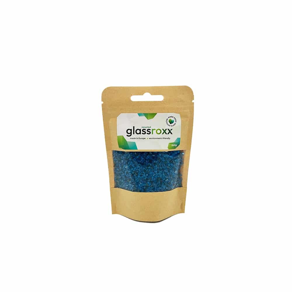 GlassRoxx – spalvotos stiklo granulės iš perdirbto stiklo, sodri mėlyna, 150 g