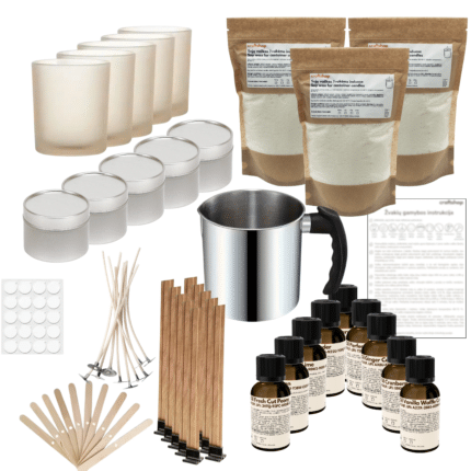 - 900g sojų vaškas žvakėms indeliuose